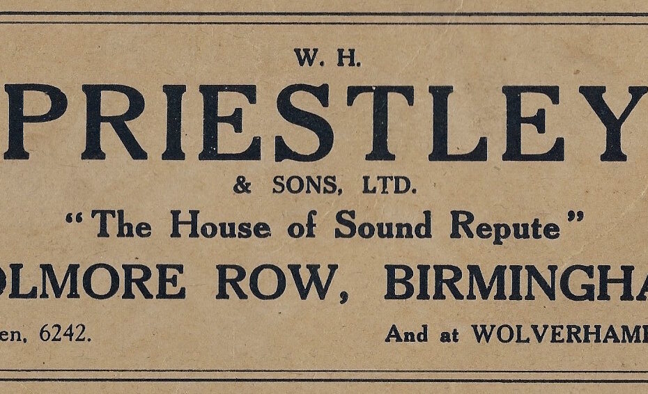 “The House Of Sound Repute” Colmore Row, Birmingham (and Wolverhampton) The National Archives in Kew have the company registered in 1935 – further investigation needed to determine how long the Birmingham shop was open. Our guess is until 1939 when war broke out. TBC