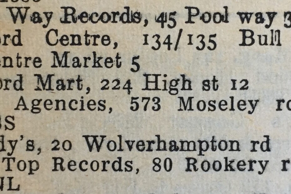 134-135 Bull Ring Centre Market B5 So we stumbled on another ‘Record Centre’ whilst researching, with (current) evidence of it being open between 1967-1974, so we wondered if it had any connections with Ray Purslow prior to him opening his ‘The Record Centre’ in Loveday Street. This is what Ray came back with: “Re the… Read More »Record Centre (Bull Ring)