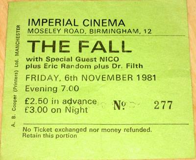 I remember the Fall gig over-ran massively leaving a couple of dozen remaining seated on the uneven (and not particularly clean) floor listening to Nico at around midnight.