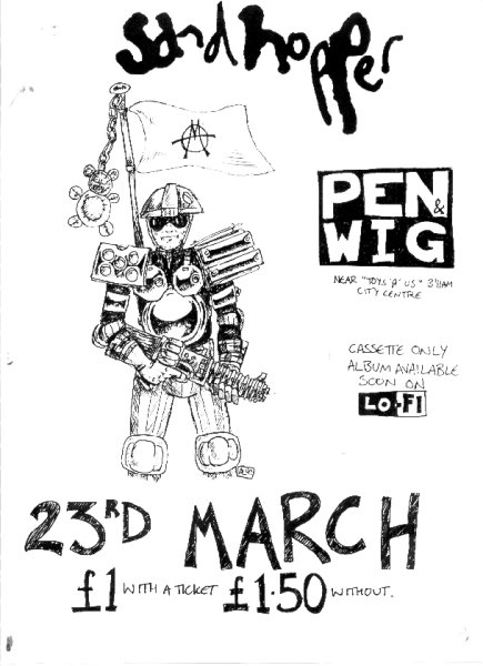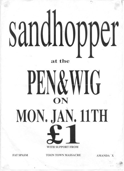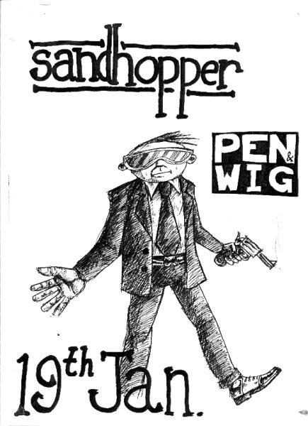 Was just thinking about the times I played there today, so googled the Pen & Wig….lo and behold, three posters that I made for Sandhopper (the band I fronted at the time)