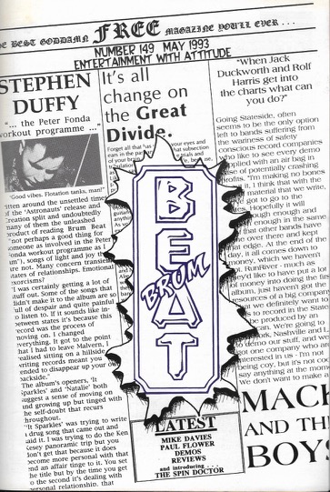 Brum Beat, Number 149, May 1993. Full copy of Brum Beat from May 1993 featuring Stephen Duffy, The Great Divide, Mack & The Boys, Tony Fenelle